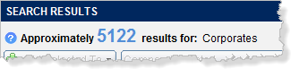 The Search Results page returns securities that match the search criteria you have submitted. The approximate number of items returned and the criteria used for the search is located in the top left corner of the Search Results panel. For example:
