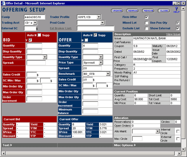 The Offering Setup screen will be used to setup new offerings or modify current offerings.